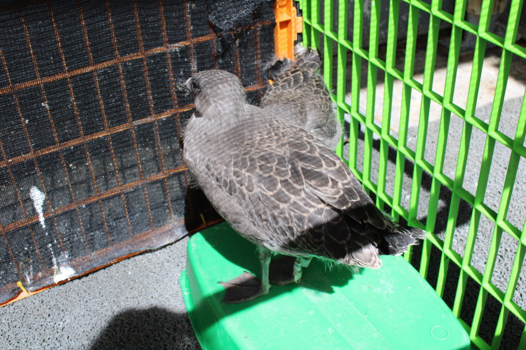 Keine Ahnung, was dies für Vögel sind, aber die beiden hatten bei Ihrer Einweisung gerade 300 Gramm auf die Waage gebracht und waren grade eine Hand voll Leben. Jetzt hüpften sie schon ein wenig herum und einer machte am Nachmittag bereits seine ersten Flugversuche. Leider noch erfolglos, aber ich denke, dass die spätestens in einer Woche entlassen werden.
